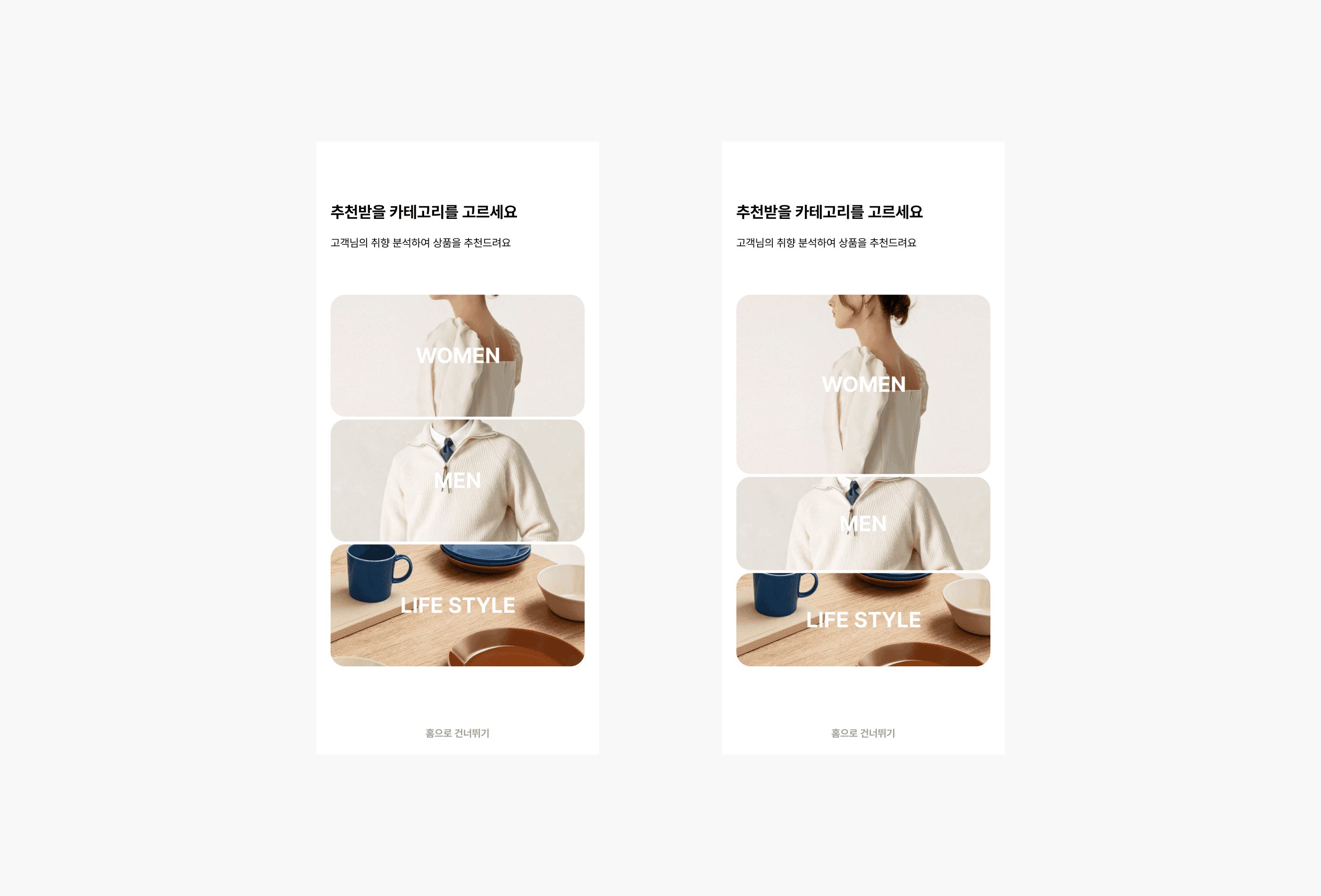 The experience from signing up to entering the app is a critical moment that shapes the user's first impression of the service. When defined as the onboarding process, providing an engaging and relevant onboarding experience can positively influence both sign-up and first-purchase conversion rates. Style Onboarding is a program that offers users a selection of lookbooks across various categories and styles, allowing them to choose based on their preferences. Based on their selections, personalized curation is provided to help users easily discover and purchase brands and products that match their style.
