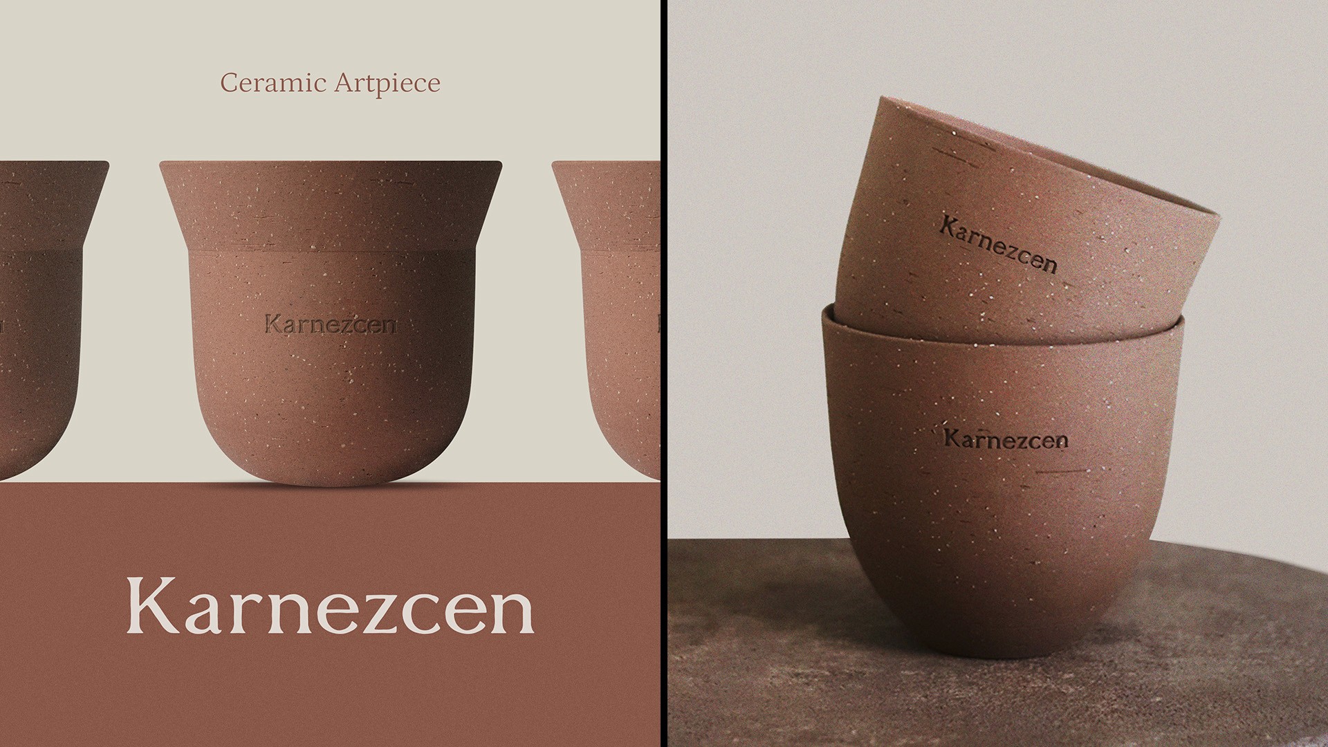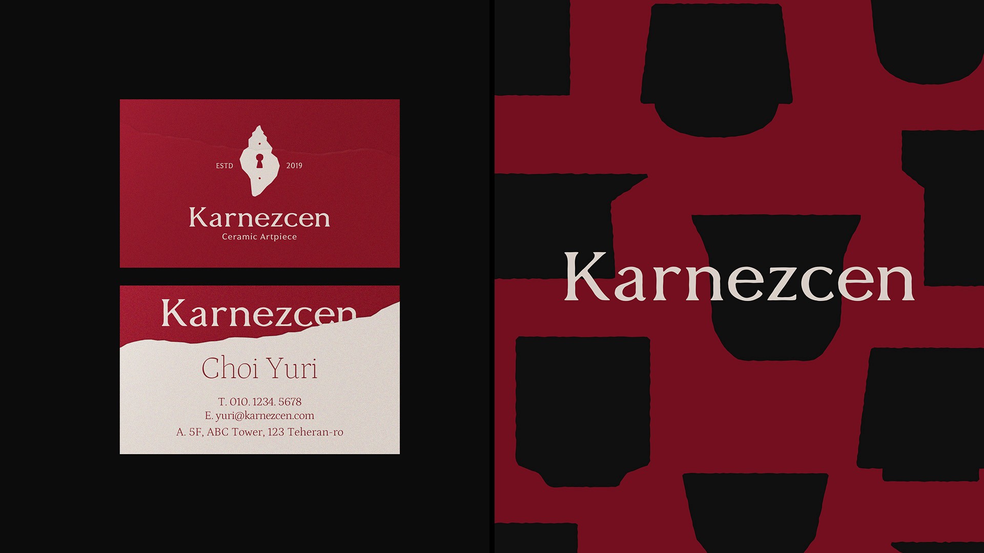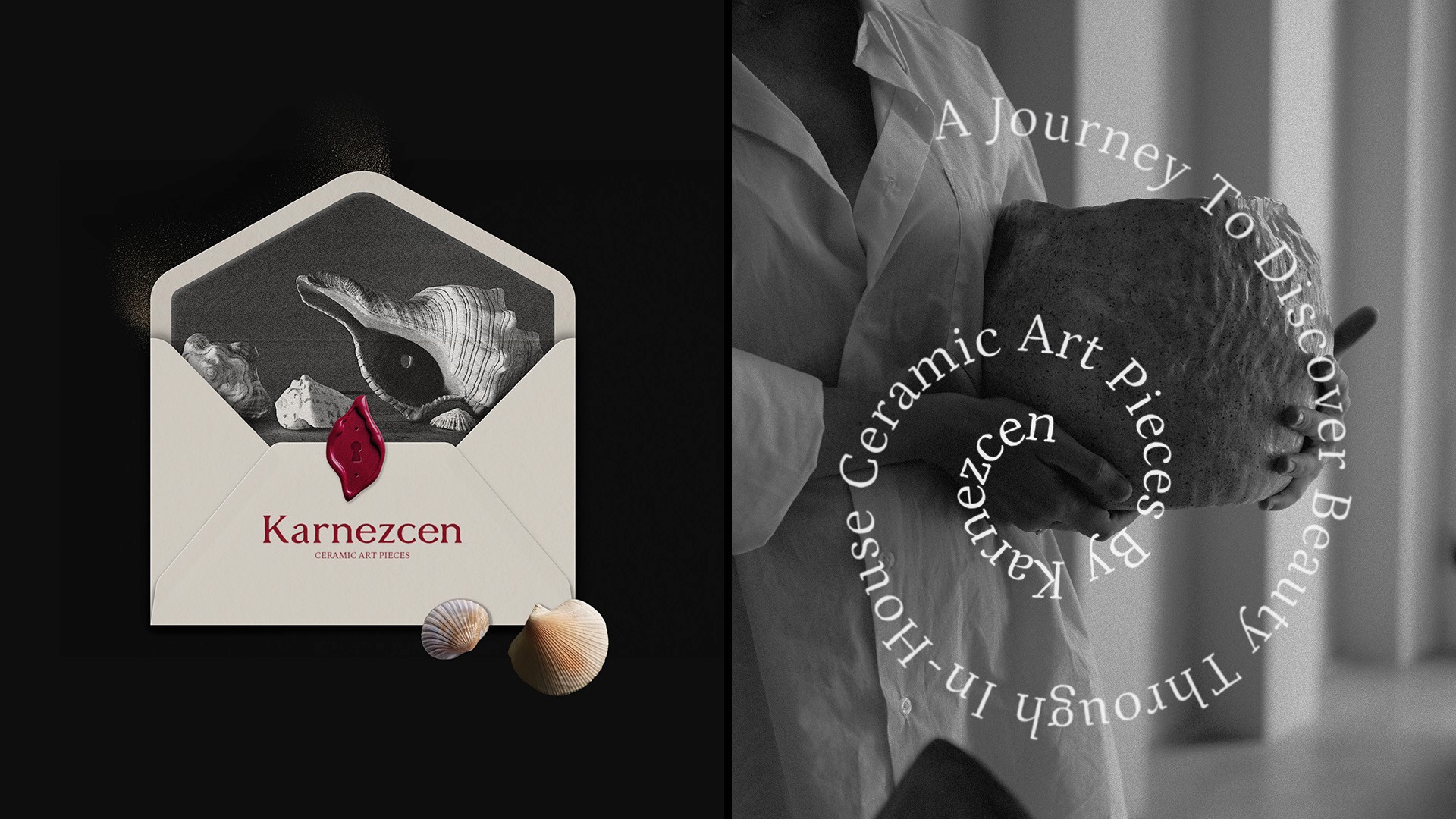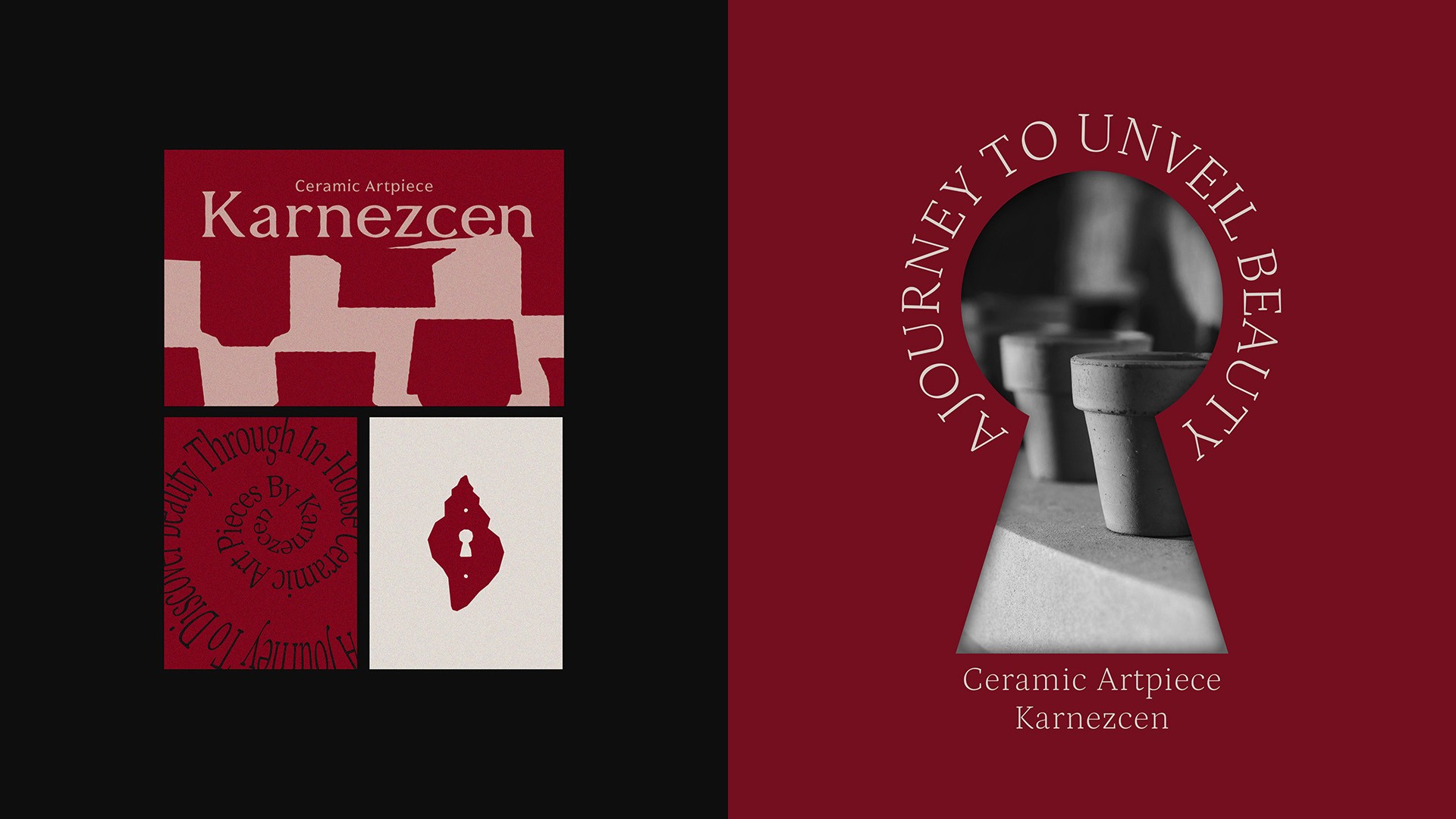 Karnezcen is a ceramic studio inspired by the hermit crab—an animal that grows by finding a space that fits. This symbolizes the brand’s philosophy of creating personal, evolving spaces through crafted beauty. The logo features a delicately carved shell form that intuitively evokes the hermit crab, reflecting Karnezcen’s creative freedom beyond physical boundaries. A keyhole and the act of turning a key are used as visual metaphors, symbolizing the journey of discovering new beauty. The logotype carries a natural ceramic texture, balancing refinement with warmth. A palette of red, black, and ivory conveys passion, depth, and organic calm—capturing Karnezcen’s mission to shape beautiful, personal lifestyles through craftsmanship.