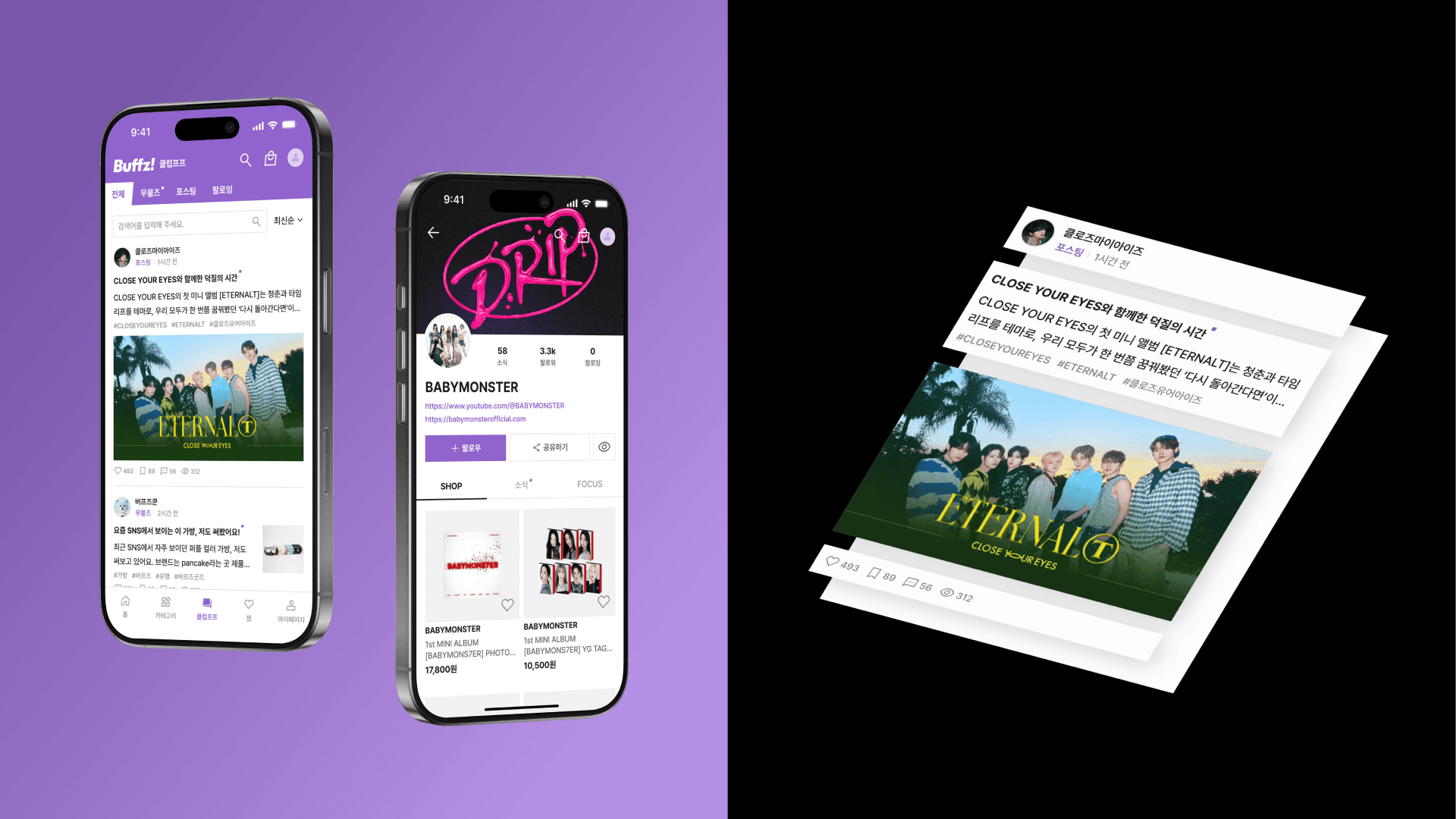 YG PLUS launched BUFFZ, a multi-IP fandom platform designed to connect fans with a wide range of official and fan-centric merchandise. The name combines “Buff” (enthusiast) with “-Z” (a collective), reflecting a community-driven identity. A new brand system was developed to support this concept. BUFFZ offers official albums, MD, and curated fan goods, while collaborating with various IPs to deliver unique products. With features like fast shipping and crowdfunding, it improves the fan shopping experience and provides a space for users to connect and share fandom culture.
